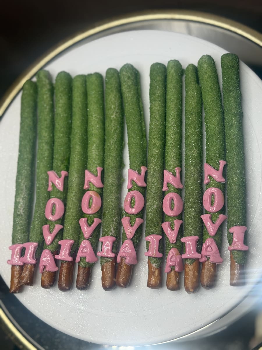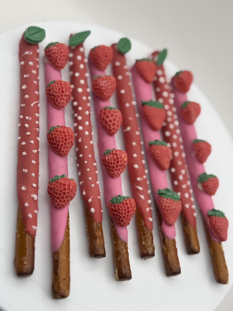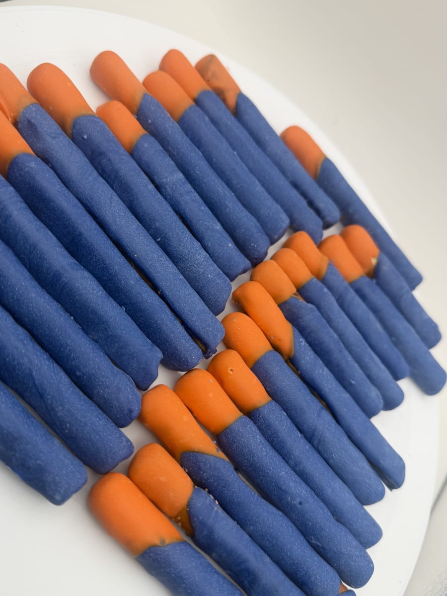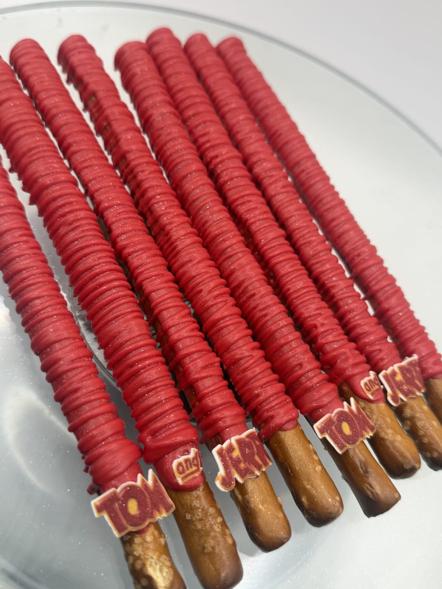 Indulge in a crunchy, sweet treat with our (12) chocolate covered pretzels sticks. Each order includes 12 hand-dipped pretzel rods, finished in your color of choice and topped with either a delicate drizzle or playful sprinkles. Perfect for gifts, party favors, corporate events, or an everyday snack. Fast, beautiful, and made to impress.